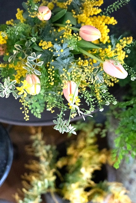 2月のレッスンのテーマは「ミモザとチューリップのブーケオブリーク」です。